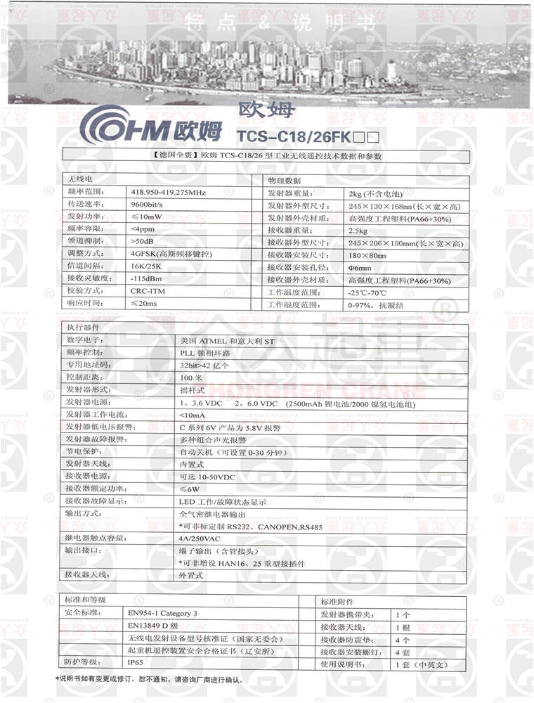 摘要: 歐姆無線遙控器TCS-C18/26FK技術(shù)參數(shù)