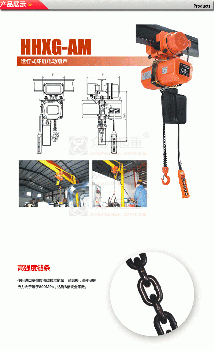 1、高效、質輕電機,無石棉剎車系統,低能耗。 2、沖壓鋼構殼體,輕巧而堅固。 3、高強度安全吊鉤,承受意外超負荷沖擊不會發(fā)生斷裂,只是逐漸變形。 4、輕巧、美觀而耐用的塑制鏈袋。 5、極限開關:吊上吊下都有極限快關裝置,使電機自動停止,反防止鏈條超出,確保安全。 6、逆相保護裝置:特殊電線裝置,當電源接線錯誤時,控制電路無法動作。 1.要保持連續(xù)和令人滿意的操作,必須實施定期項目檢查規(guī)程,更換磨損或損壞的零部件,以使其不成為非安全操作的隱患。 2.項目檢查間隔依葫蘆使用情況而定,并基于所使用的葫蘆類型以及重要零部件的磨損程度、老化和故障程度來確定項目檢查間隔。 3.不要使用處于維修狀態(tài)的葫蘆。 4.不要在吊有載荷的情況下儲藏葫蘆。 5.擦除葫蘆上的污漬。 6.在干燥清潔的場所儲藏葫蘆。 7.起重鏈條爆裂可能導致人員傷亡或嚴重傷害,應仔細維護起重鏈條,包括正確操作,良好的維護和檢修。 8.應確保對起重鏈條,吊銷、上鉤軸、吊鉤頸部等零部件的潤滑。 9.應確保用于黃油相同的機械油對起重鏈條加以良好潤滑。 操作前注意事項: 1.如產品的吊鉤和吊耳發(fā)生變形或裂痕,請勿使用。 2.操作前,應確保實施過項目檢查分類中的所有內容。 3.對提升或拉緊物需進行質量估算,再選用合適的起重葫蘆。 4.檢查上吊鉤銷軸和下吊鉤確保有無變形或松動。 5.手動檢查限位開關工作是否正常。 6.鏈條扭絞、打結、雙行鏈條下吊鉤翻轉均勿開機起吊。 7.電動葫蘆必須在可靠接地的前提下投入使用。 8.起重鏈條是特殊合金鋼制作并經過熱處理,不能私自進行焊接或改裝。 9.請在負載使用前給減速器加注0.7KG L-CKD100閉式齒輪油,在鏈條表面涂刷L-CKD100號齒輪油或鈣基潤滑脂。 10.裝配在葫蘆里的鏈條不可修理。 11.在溫度低于0°時確保制動器沒有結冰。 操作中注意事項: 1.勿使用帶有變形或有裂痕的起重鏈條的葫蘆。 2.勿將起重鏈條作為重載索具使用。 3.勿將該葫蘆用于斜吊垂直方向>12°的重物。 4.勿將重物直接掛于吊鉤尖端上支承。 5.勿將鏈條在阻礙物(如鋼板)表面通過。 6.勿在懸吊的重物上面實施焊接或切割操作。 7.勿搖動提升貨物。 8.勿使用已損壞或使用時有異常聲音的葫蘆。 9.勿起吊時作急速上、下的重復操作。 10.勿將提升的重物擱置,長時間無人監(jiān)管。 11.應確保重載正確置于吊鉤鉤腔部位。 12.實施提升重物前,應確保消除起重鏈條間隙,以避免發(fā)生沖擊負載現象。 操作完畢注意事項: 1.操作之后應確保將重物安全的降落下來,以避免重物掉落。 2.操作完畢后及時按下手電門總停按鈕,避免他人誤操作。 其他注意事項: 1.在特殊環(huán)境條件下使用時(如鹽水、海水、酸性物質、堿性物質或易爆環(huán)境),請?zhí)崆芭c你的經銷商或本公司聯系予以確認。 2.勿使用發(fā)生故障或維修狀態(tài)下的葫蘆。 |